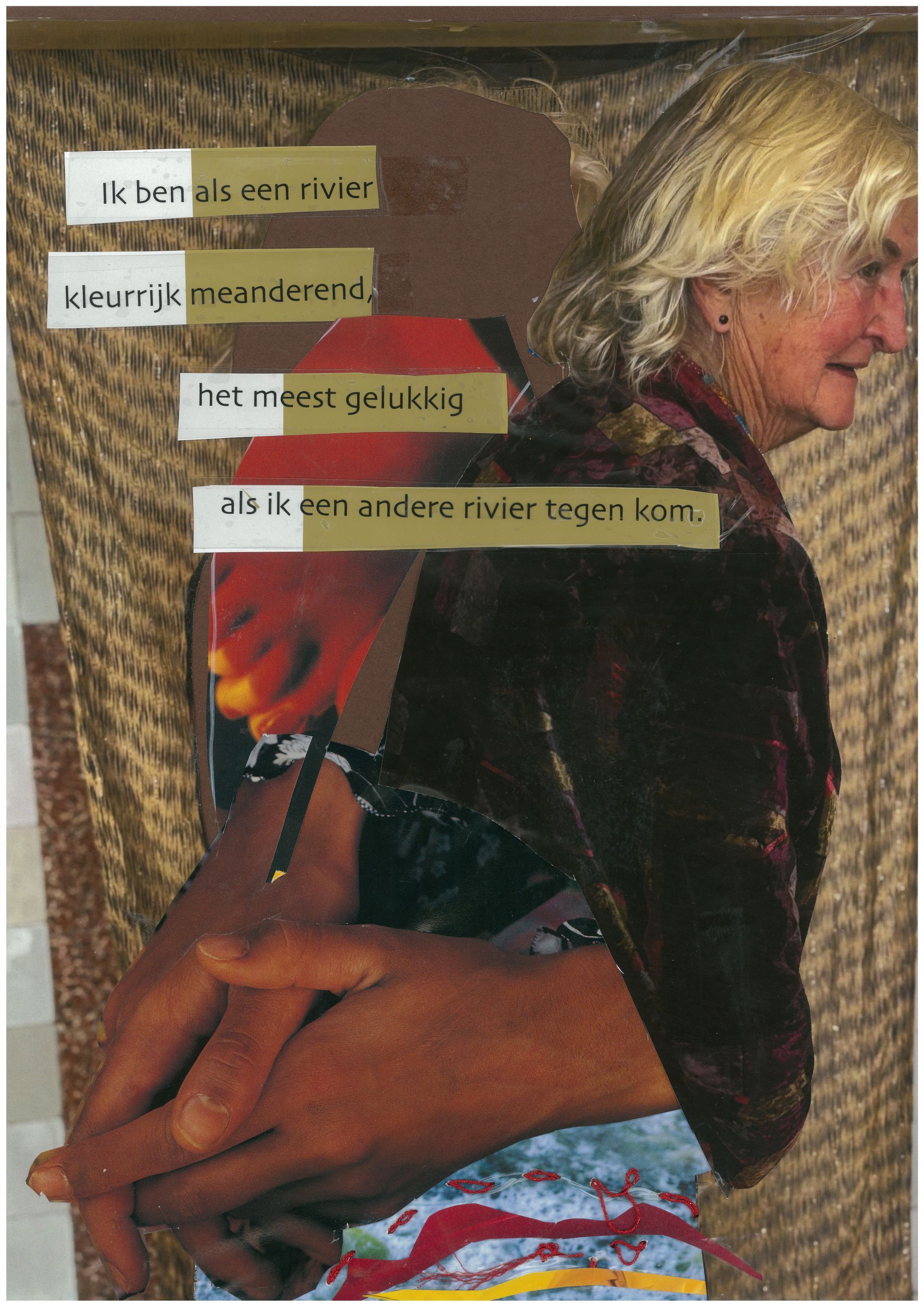 In de laatste bijeenkomst maakte elke deelnemer onder begeleiding van kunstenaar Petra Vlasman een collage die past bij een verhaal of thema dat tijdens de bijeenkomsten naar voren kwam. Op deze pagina vind je van iedere deelnemer een collage. Ieder koos één verhaal dat wij tijdens de workshop schreven en aan elkaar voorlazen. Samen vormen de verhalen een mozaïek van stemmen: persoonlijk, krachtig, kwetsbaar en warm.